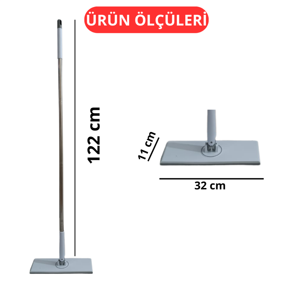 32 cm x 11 cm genişliğindeki mop gövdesi ile geniş alanlarda hızlı ve etkili temizlik sağlar.